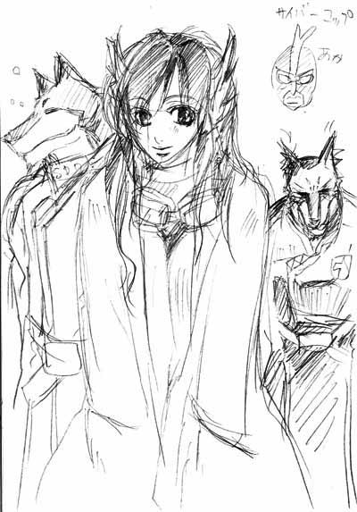 あと、右上のはサイバーコップの赤い人うろ覚え描きです。覆面レスラーとか悪魔超人とか言われましたが。幼児以下の絵。